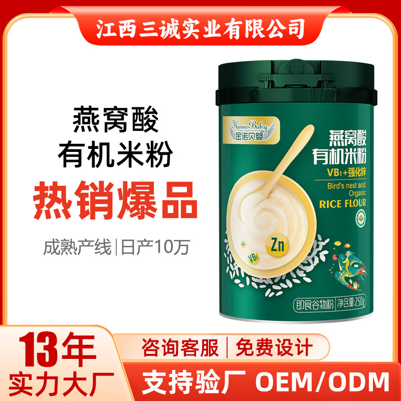 金諾貝の赤ちゃんの子供の栄養の補助食のツバメの巣の酸の有機の米の米の亜鉛のカルシウムの宝物の米の乳の250gの缶は代行します