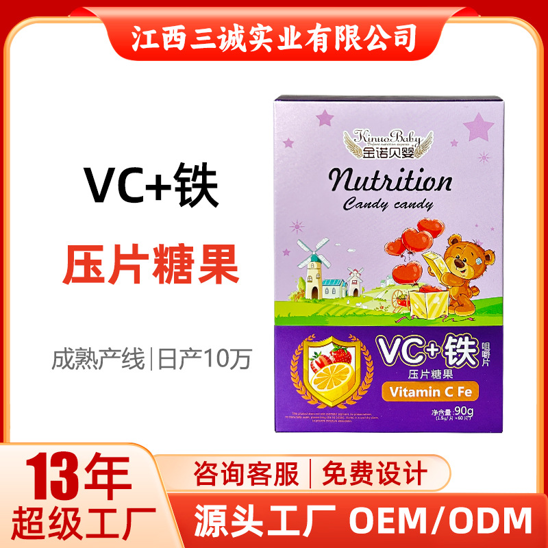 子供用 VC + 鉄チュアブル錠、アクティブプロバイオティクス消化錠、ティーンエイジャーキャンディー、60 錠箱、ドロップシッピング