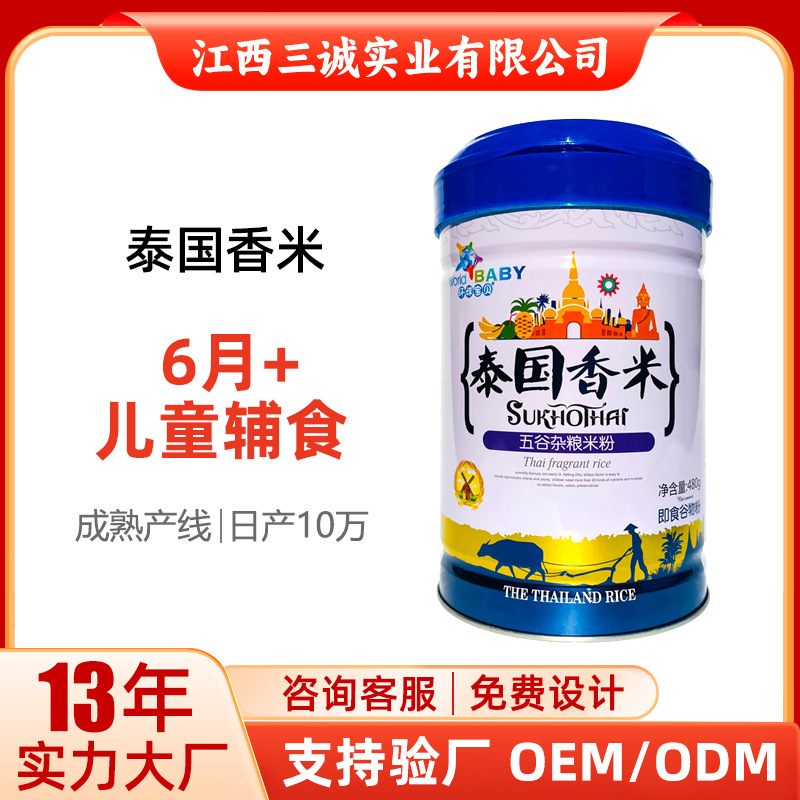 世界的な宝物ブランドの子供の米ペーストタイの香米五穀の雑穀の宝物の代理食の大きい缶の480gの補助食の米粉