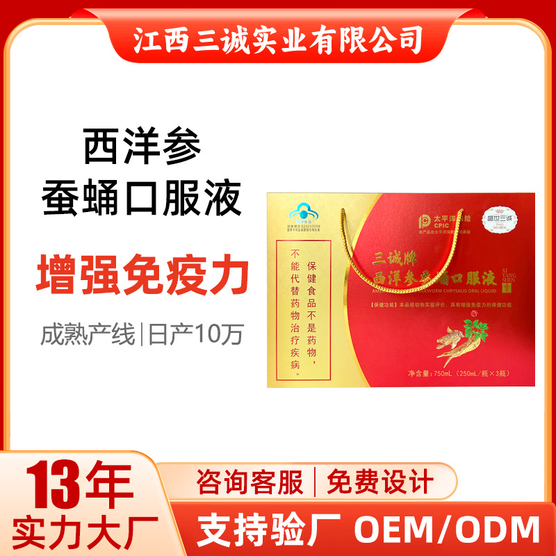 西洋参蚕蛹経口液 ブルーハット健康食品 高麗人参経口液 免疫力強化 250ML ギフトボックス 3本入り