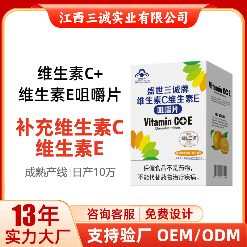 盛世三誠藍帽健康食品ビタミンc VE青少年成人カルシウム60箱