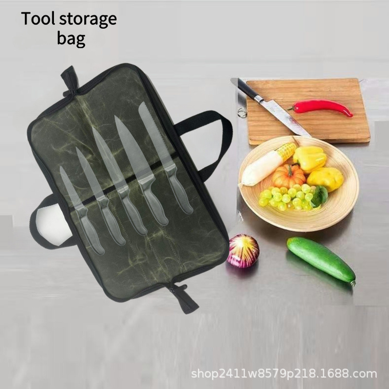 屋外耐摩耗ワックスキャンバスシェフナイフバッグジッパータイプ手持ちナイフ収納袋防水ステンレスナイフカバー