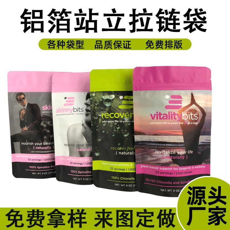 食品プラスチックアルミ箔包装袋カスタム健康食品海藻枸杞螺旋藻球藻自立自封包装袋