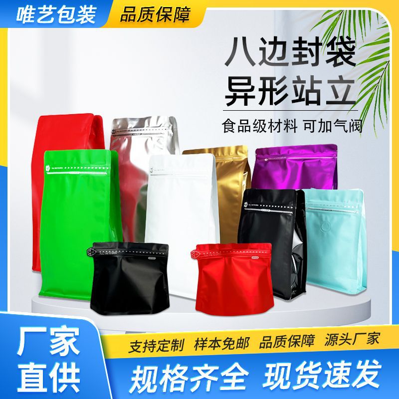 八辺封コーヒー包装袋コーヒー豆粉茶粉末間食食品アルミ箔自立チャック袋エアバルブ袋
