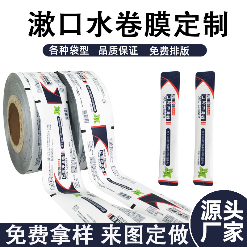 カスタムうがい水ロールフィルム自動包装プロバイオティクス包装袋petアルミメッキ複合アルミ箔フィルム携帯