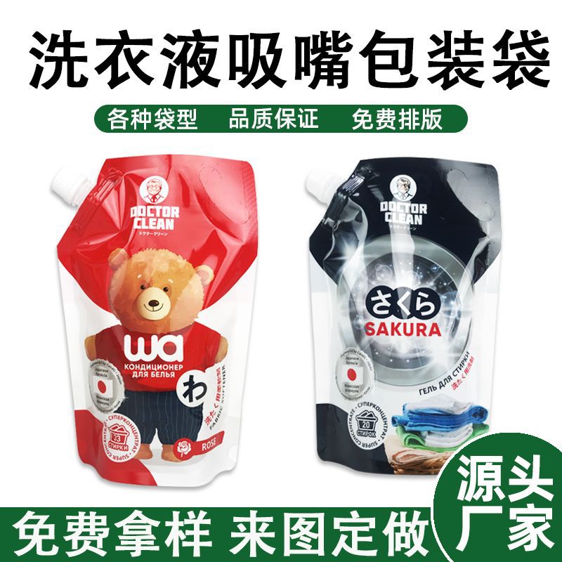 手提げ洗濯液吸口袋カスタム日化用品スタンド斜口液体袋複合柔順剤包装袋