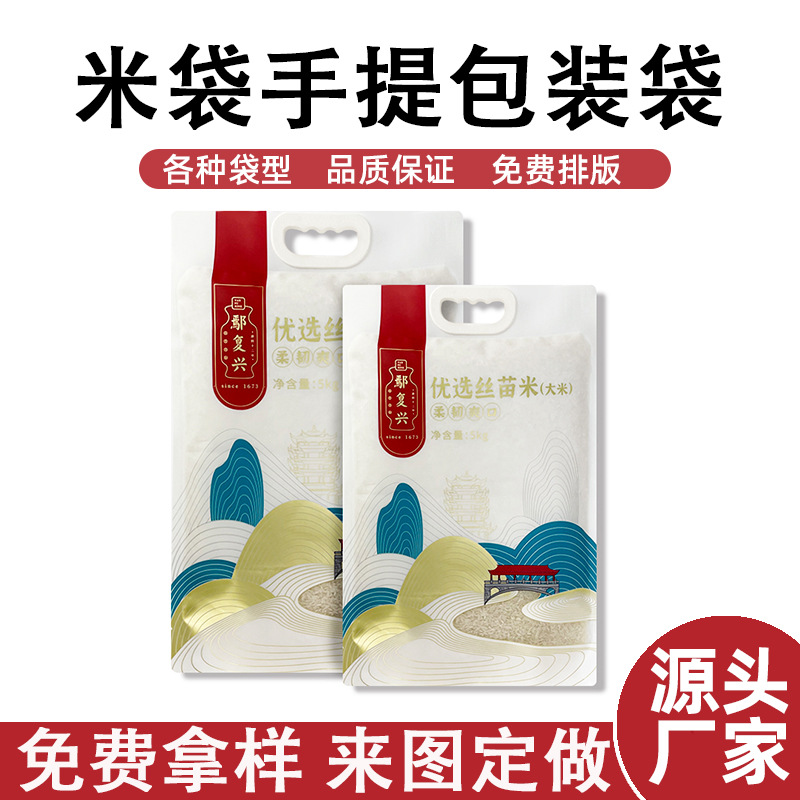 カスタムカラー印刷米手提げ包装袋小麦粉粗食糧豆類真空雑穀食品覇膜防水編み物袋