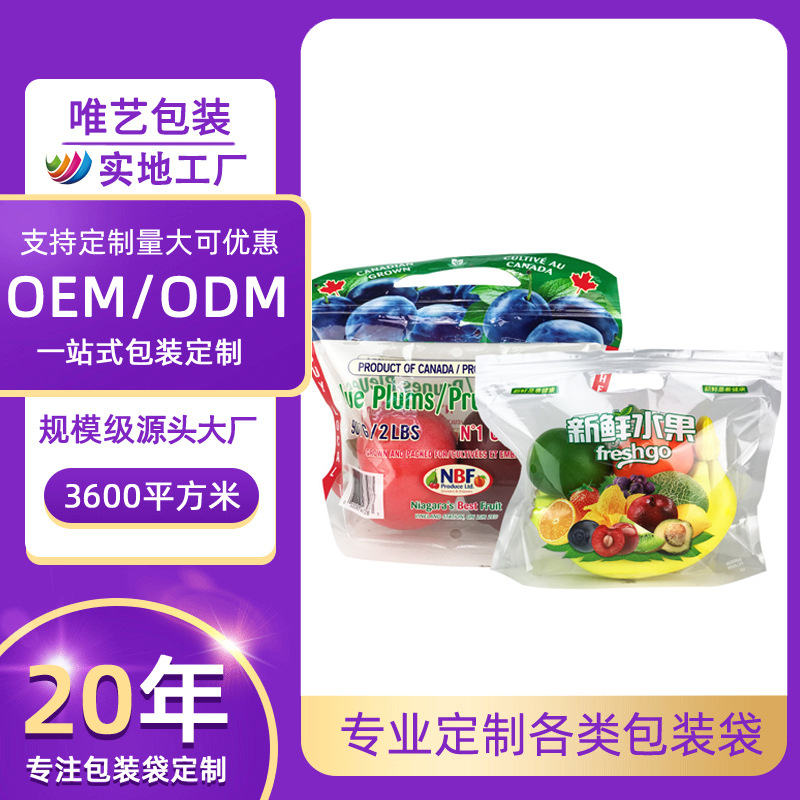 カスタム果物包装袋リンゴ梨キウイマンゴーみかん沃柑自立ファスナープラスチック野菜包装袋