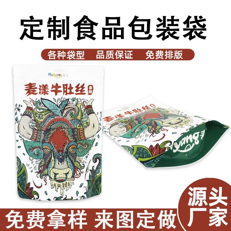 牛の腹の包装袋を印刷して冷たい鍋を並べて、毛の腹のハロゲン味の味噌のアヒルの掌のレジャーの間食をかき混ぜて包装袋を立てます。