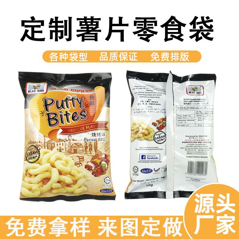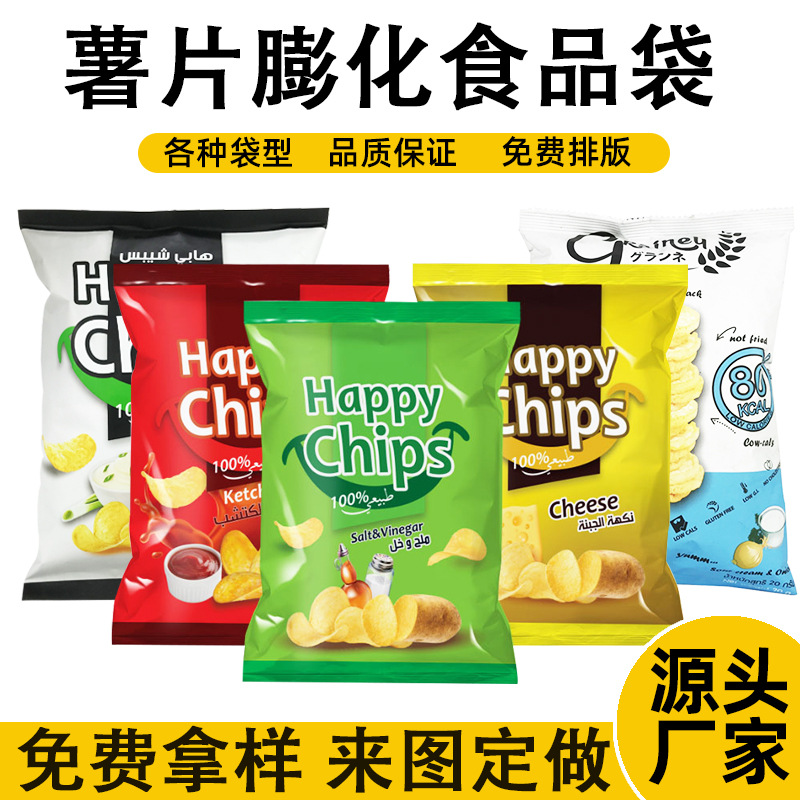 レジャー食品包装袋カスタムポテトチップスアルミ箔膨化食品自立バックパックアルミ箔自動包装フィルム