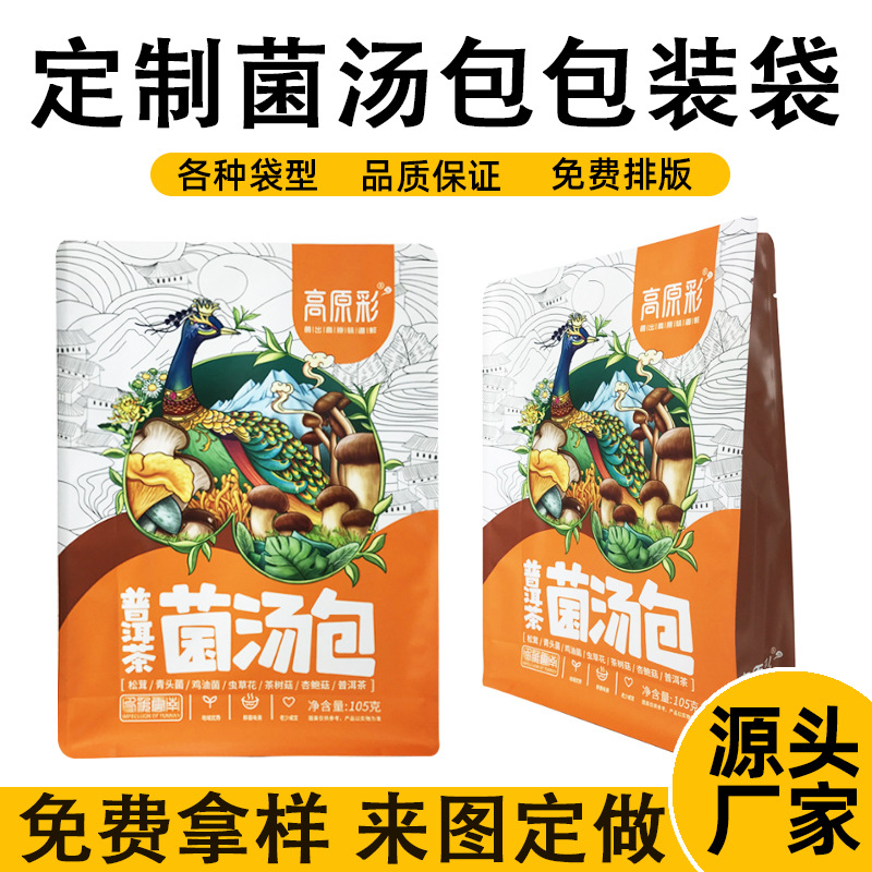 菌スープの包装袋を注文してスープの材料を煮ます。