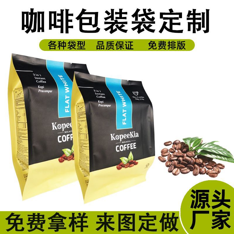 印刷四辺シールコーヒー包装袋インスタントコーヒー豆冷凍乾燥粉アルミ箔マット食品級袋チェックバルブ