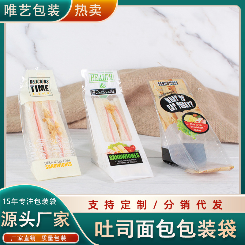 引き裂きやすいサンドイッチ包装袋ケーキパン焼き使い捨て三角パン袋透明窓開けサンドイッチ袋
