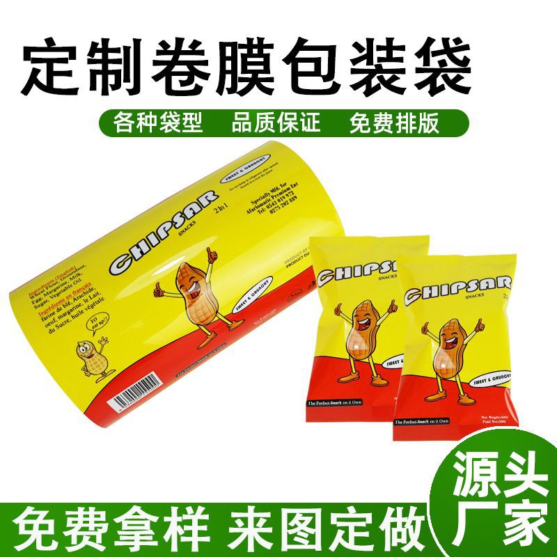 食品包装袋複合ロールフィルム自動包装印刷スナックナッツポテトチップス真空袋三辺シールアルミ箔袋
