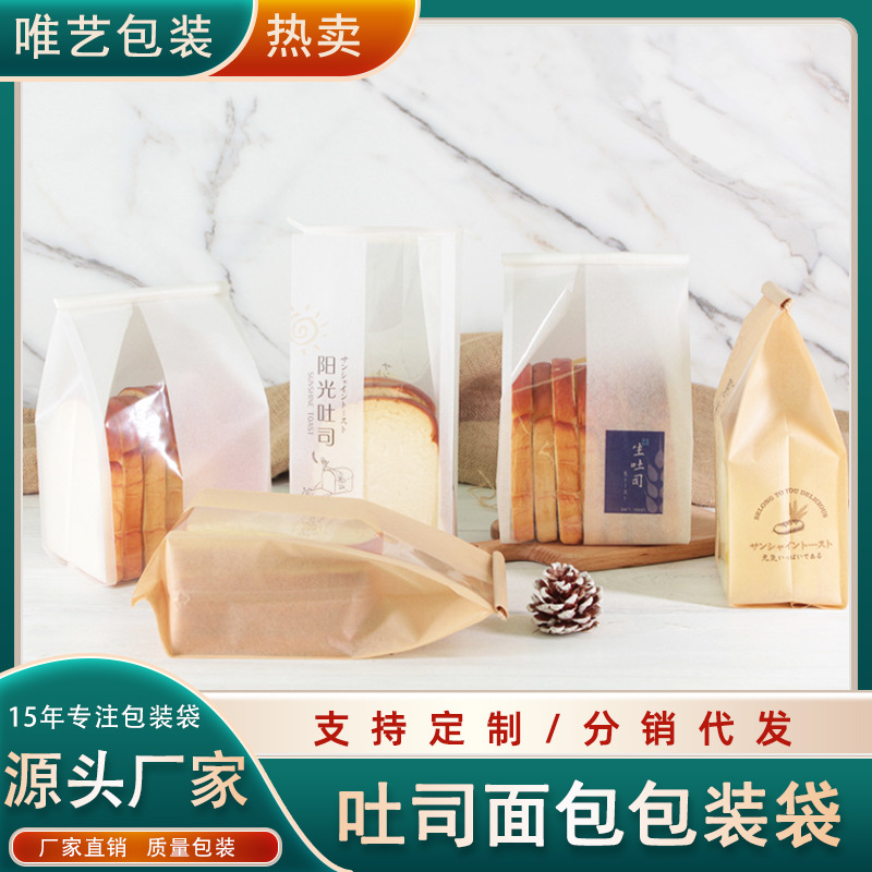 焙煎トースト袋包装袋カールクラフト紙袋窓開けスライスパン八辺封綿紙鉄条自封袋