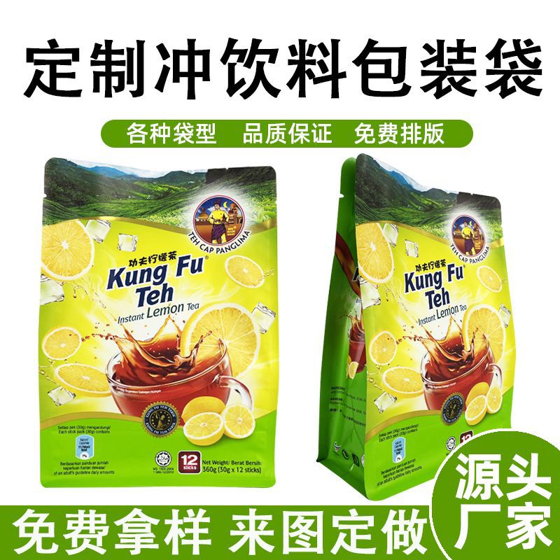 カスタムインスタント飲料包装袋レモン茶果物茶固体洗剤食品平底八辺封包装袋