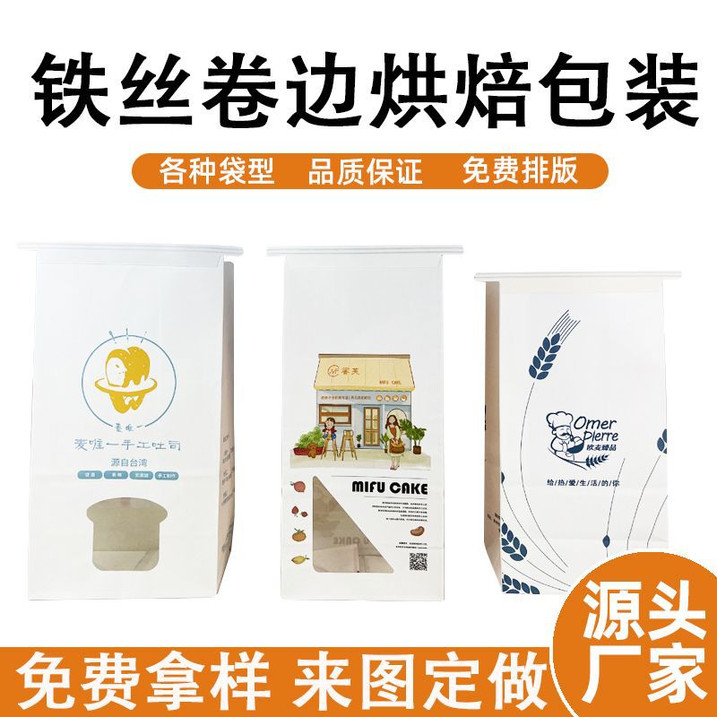 鉄線巻きパン袋カスタムスライストースト袋牛角包麻芋包装袋焙煎窓クラフト紙袋