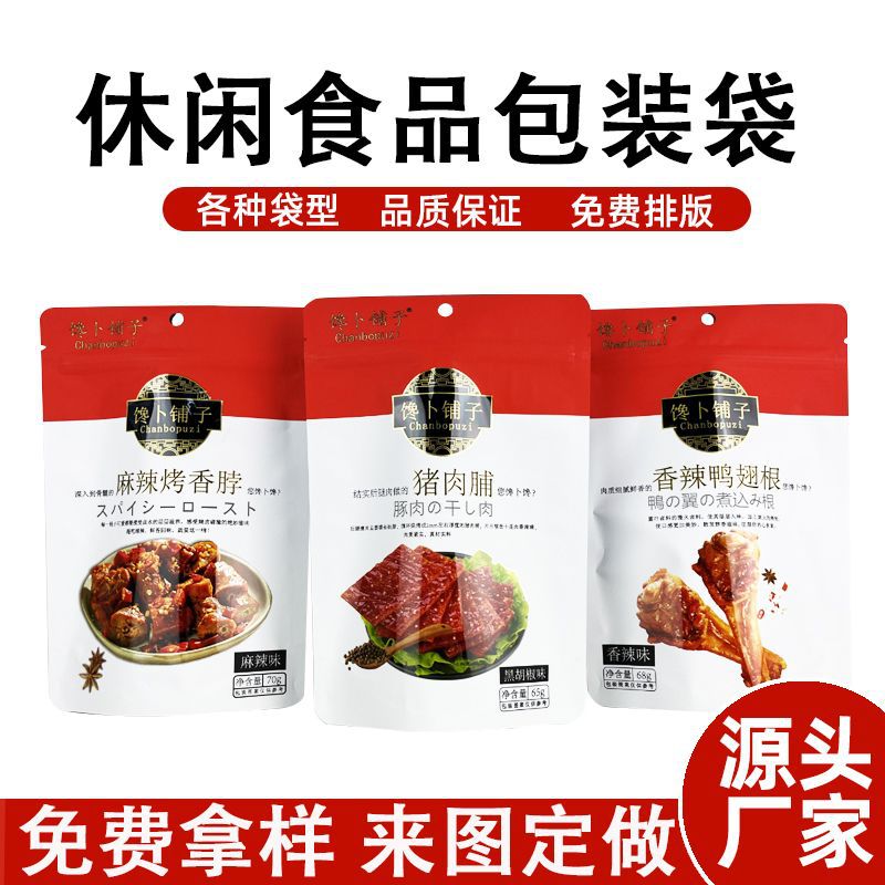 注文のハロゲン味の調理食品の包装袋のアヒルの首の鶏の羽のアヒルの羽のレジャー食品の間食の真空のアルミ箔のファスナーの包装袋