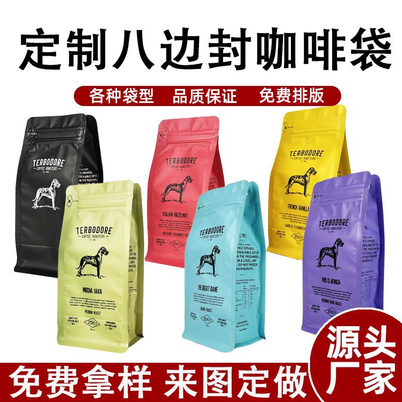 コーヒー包装袋カスタム八辺封コーヒー粉自己封袋エアバルブ付きレジャー食品茶葉アルミ箔包装袋