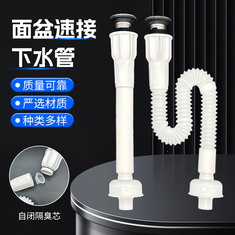 シリコン製防臭・防虫伸縮式排水管、洗面器用防臭栓、洗面器排水管用クイックコネクター、排水口、洗面器排水