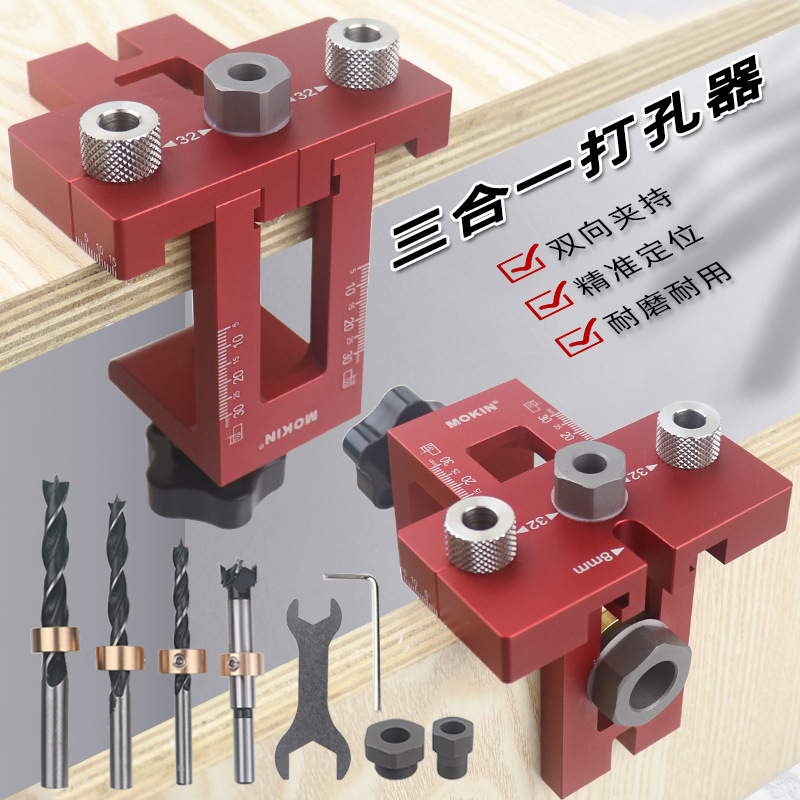 木工三合一穴あけ器丸木ほぞ接続部品センター穴開けポジショナー家具接合取付工具