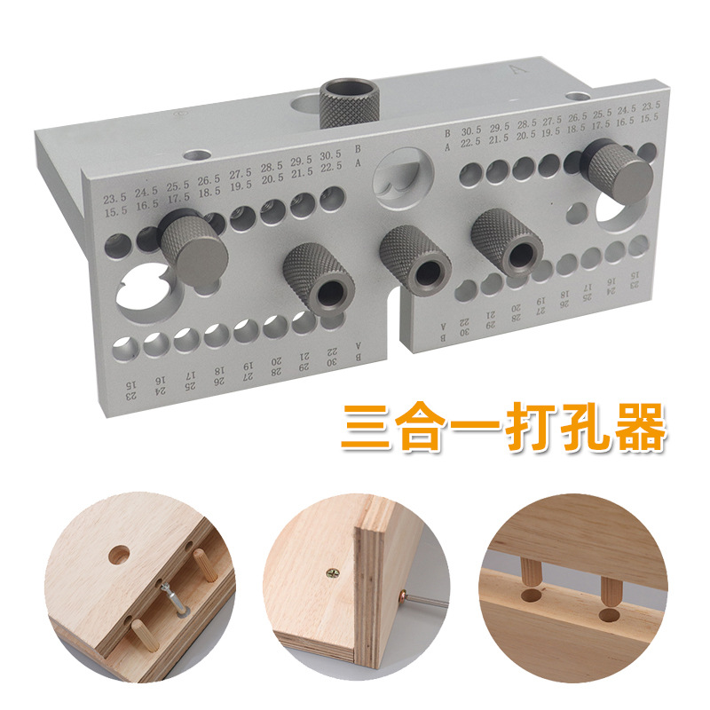 スリーインワンパンチポジショナー木工キャビネット引き出し穴あけ器丸太ほぞ接続具穴あけドリルツール