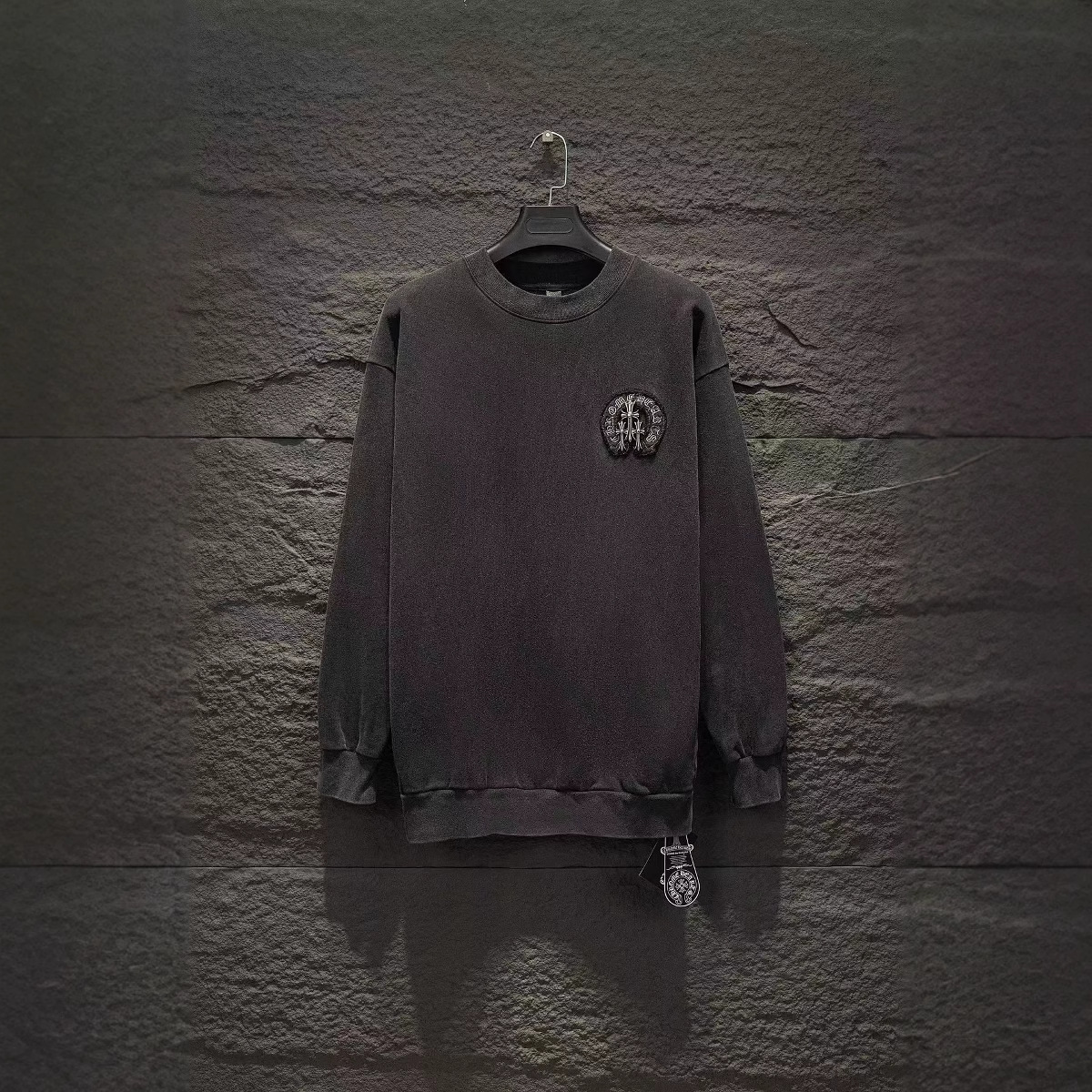 克罗伈正确版 chrome Heart 重工刺绣金属装饰高克重圆领卫衣