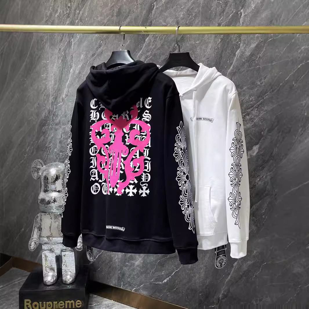 Chrome Hearts クロムハーツ ブランド スプラッシュ インク オスマンティック プリント フード付き刺繍 メンズ ヒップホップ プルオーバー スウェットシャツ