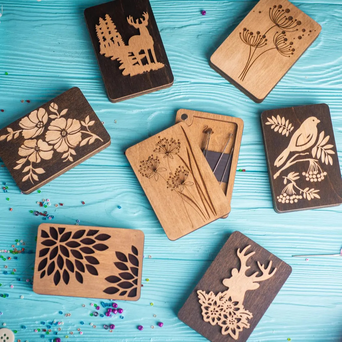 クロスボーダー新しいクリエイティブ誕生日キャンドルギフトグリーティングカードマネークリップ木製工芸品装飾品ダークブラウンツゲ