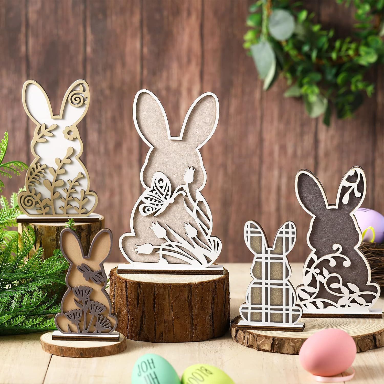 イースターバニー スタンドオーナメント ベース付き 木製工芸品 ホームデコレーション イースターパーティーの装飾