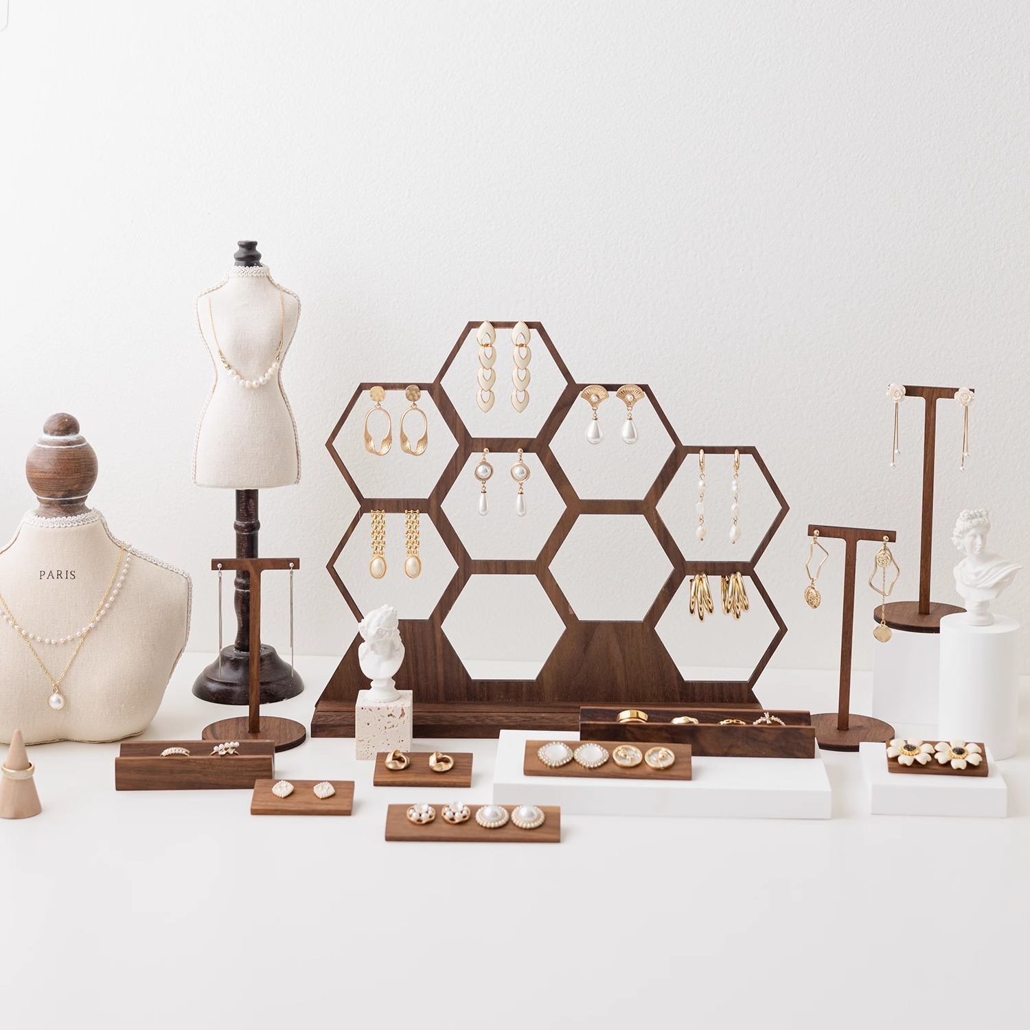 木製のレトロなイヤリングの展示棚のアクセサリー棚のピアスのイヤリング棚の店舗の陳列置物のジュエリーの撮影道具