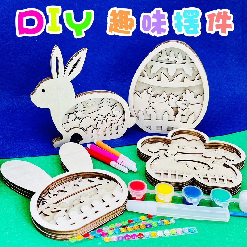 木製白胚立体デスクトップ装飾イースター卵ウサギ層フォトフレームDIY彩色落書き材料バッグ