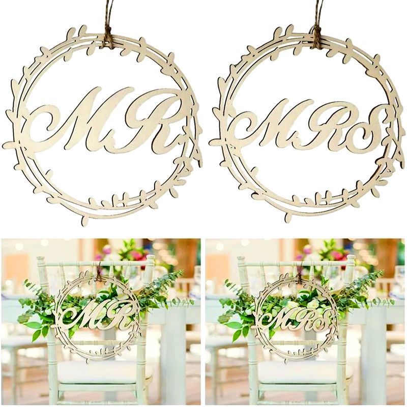 2 新しい木製ミスター/ミセス結婚式クリエイティブシートサインミスターとミセス結婚式椅子バックペンダントなし
