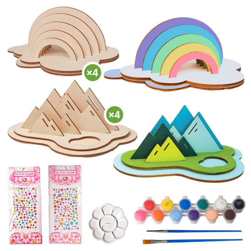 子供の知育玩具木製組み立ておもちゃ DIY 手芸レインボーマウンテン組み立て絵画おもちゃ