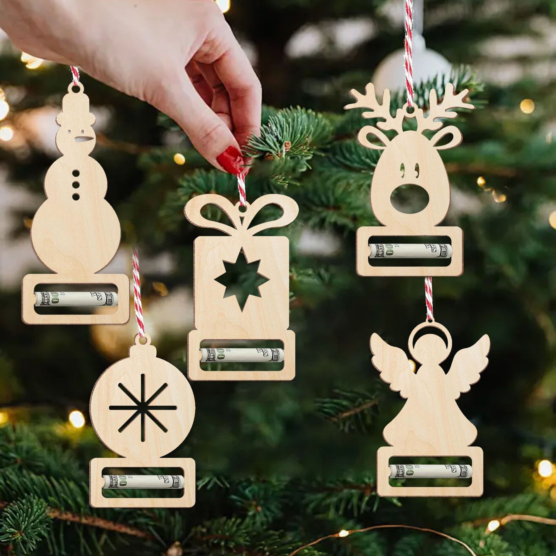 2024 新しいクリスマス装飾吊り下げクリスマス小さなペンダント木製吊りクリエイティブパーティークリスマスマネー装飾ギフト