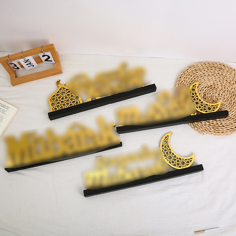 クロスボーダーアクリル密度板祝日アルファベット星月置物ゴールデンテーブルホーム木製装飾置物