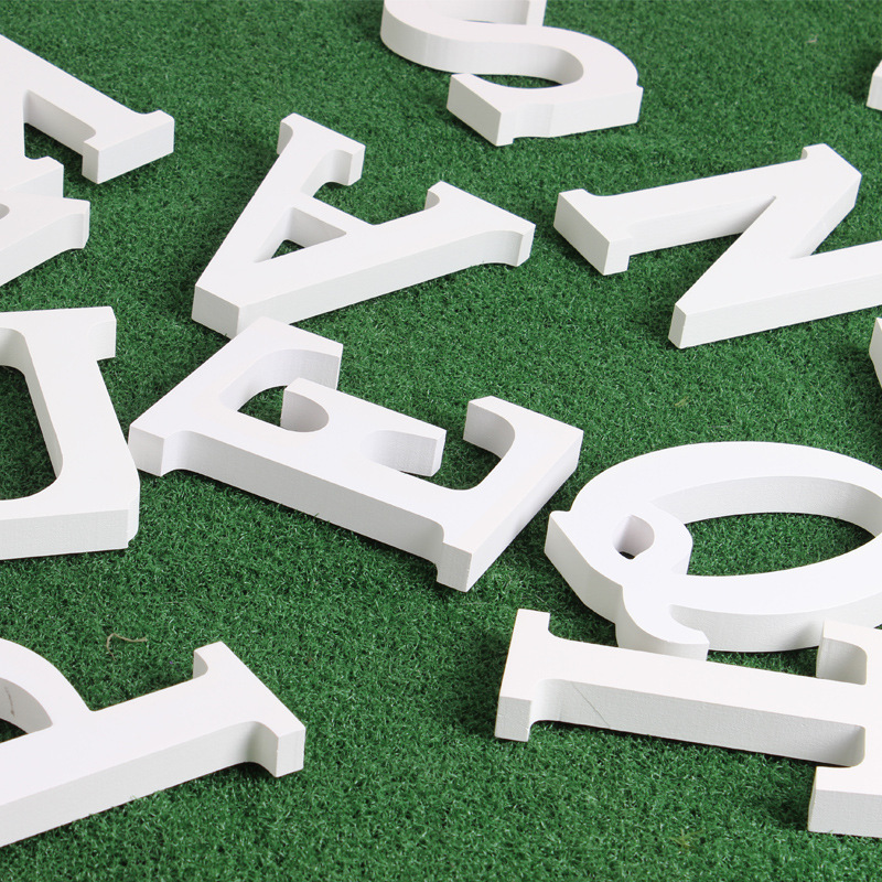 木製の英語のアルファベットの木製の白いアルファベットは装飾品の実木を飾ってアルファベットを飾っています。