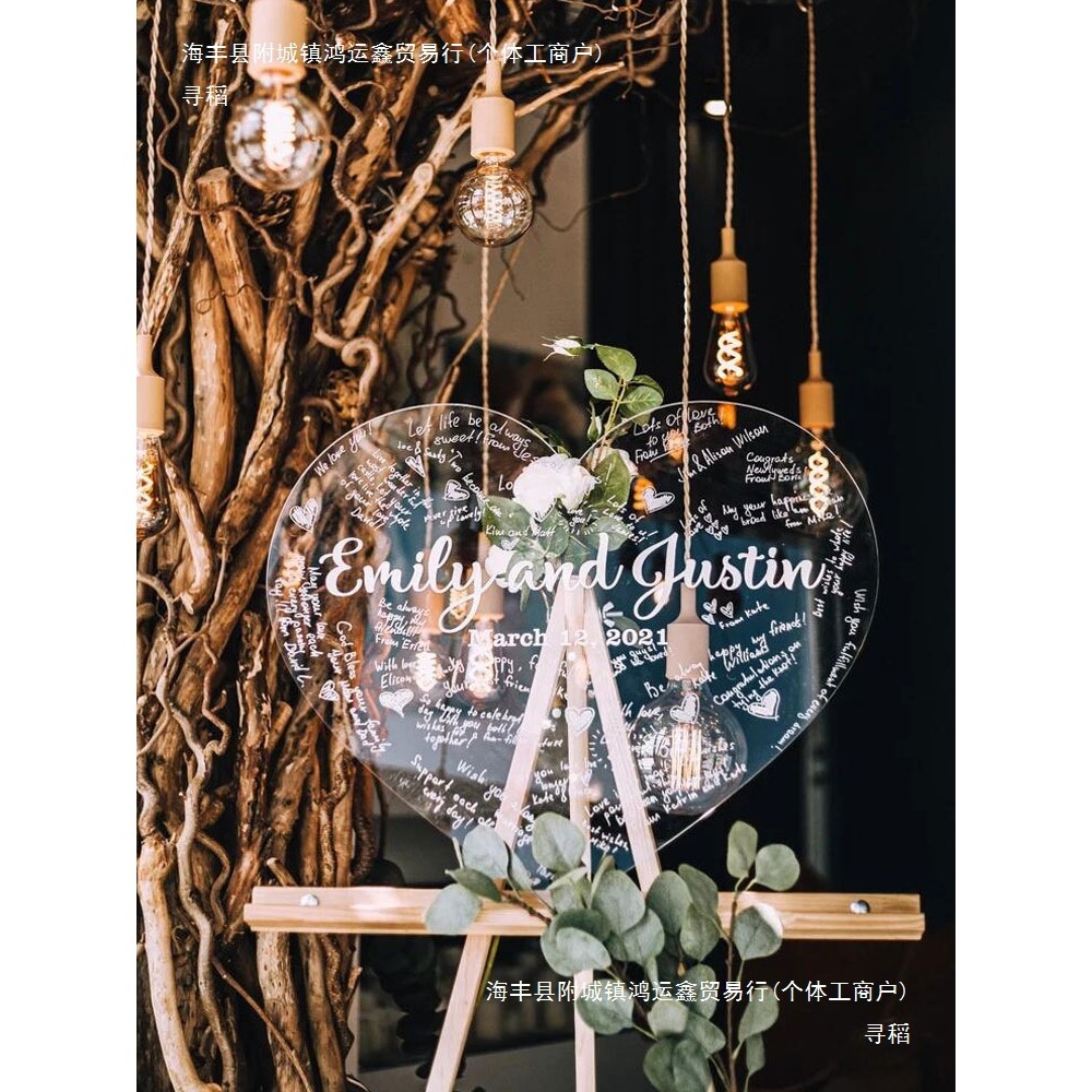 透明アクリル結婚式のメッセージ帳ハート型の丸いマーク結婚式は枠にサインします。