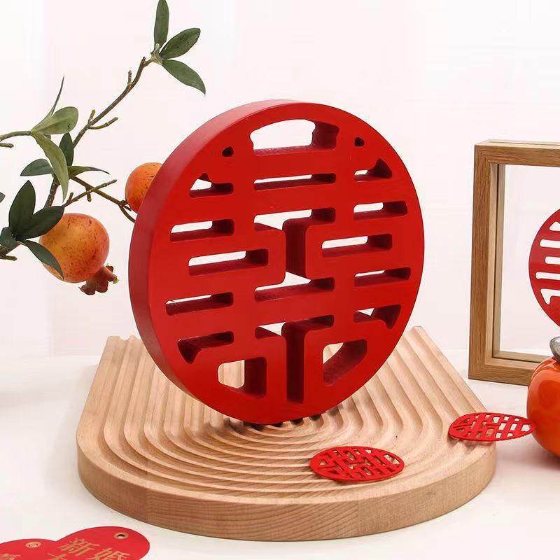 立体双喜の結婚祝いの装飾の道具の木の喜字は婚約の結婚の贈り物のお祝いの置物の卸売りを用意します。