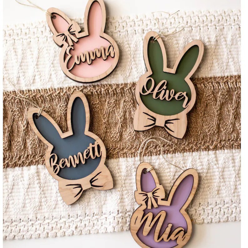 Etsyクリエイティブ3Dイースター木製装飾ウサギ耳パーソナライズされたウサギイースターバスケットラベル