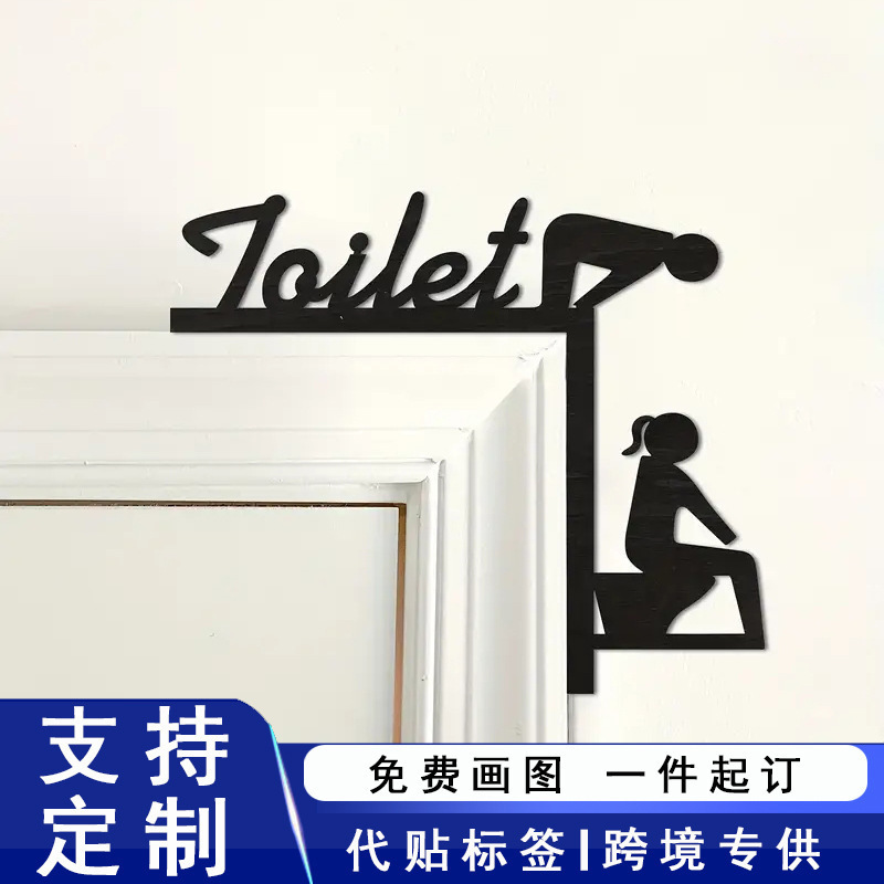 国境を越えた趣味トイレトイレトイレのドアの角に看板を掲げて木片を飾る浴室のドア枠