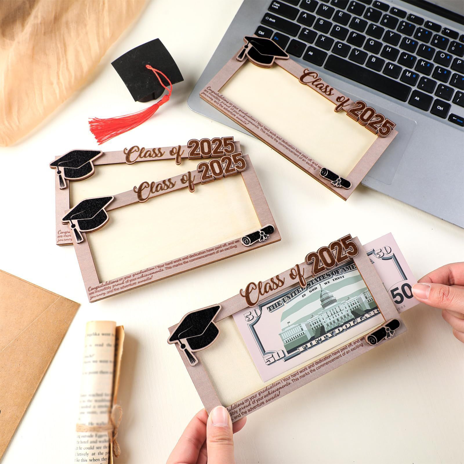 現物クロスボーダー2025年卒業シーズン木造置物class of卒業祝い雰囲気家庭置物木材チップ