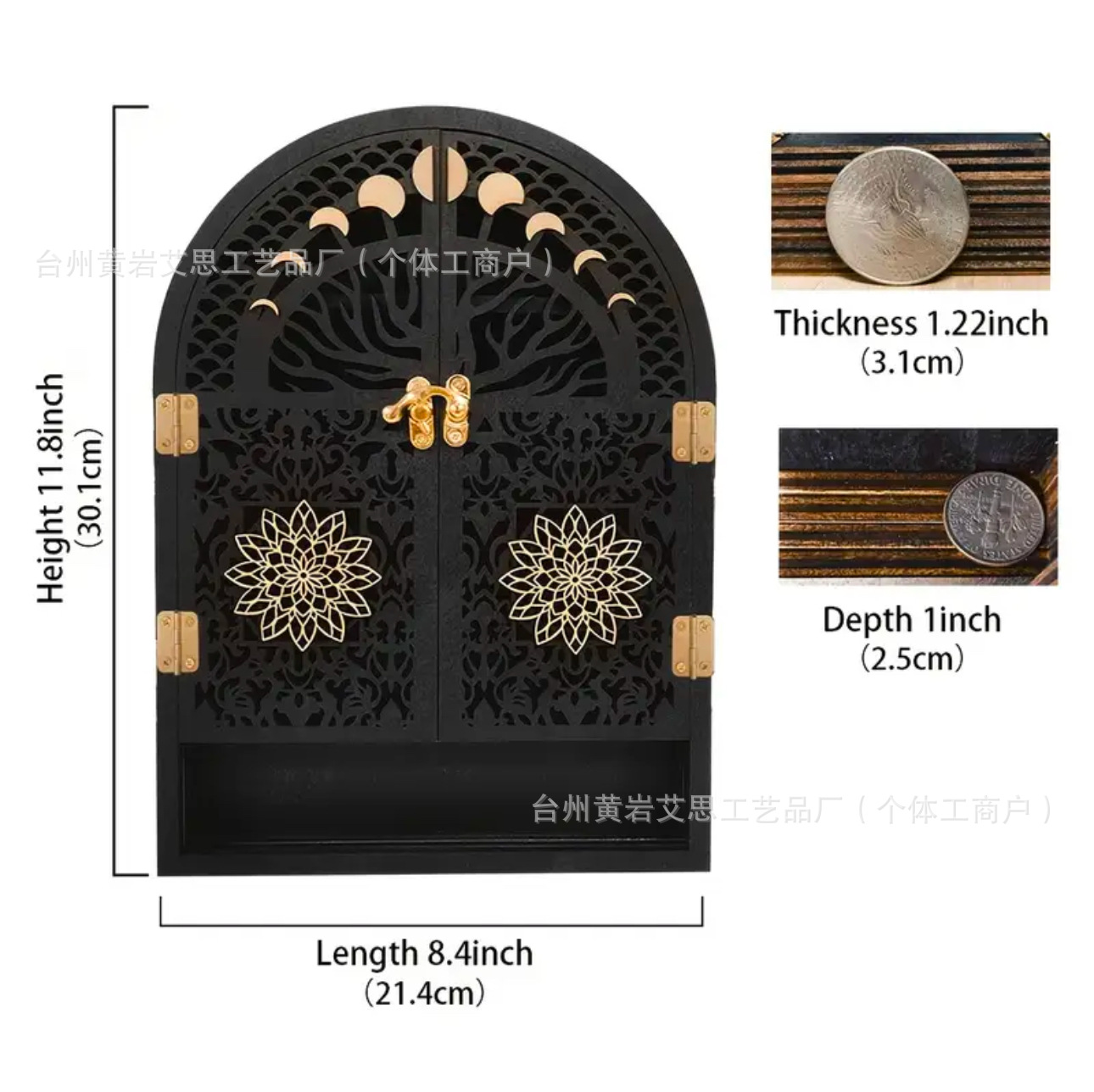 クロスボーダー太陽月物置棚ストラップホーム木製壁掛け工芸品水晶展示棚開閉式水晶
