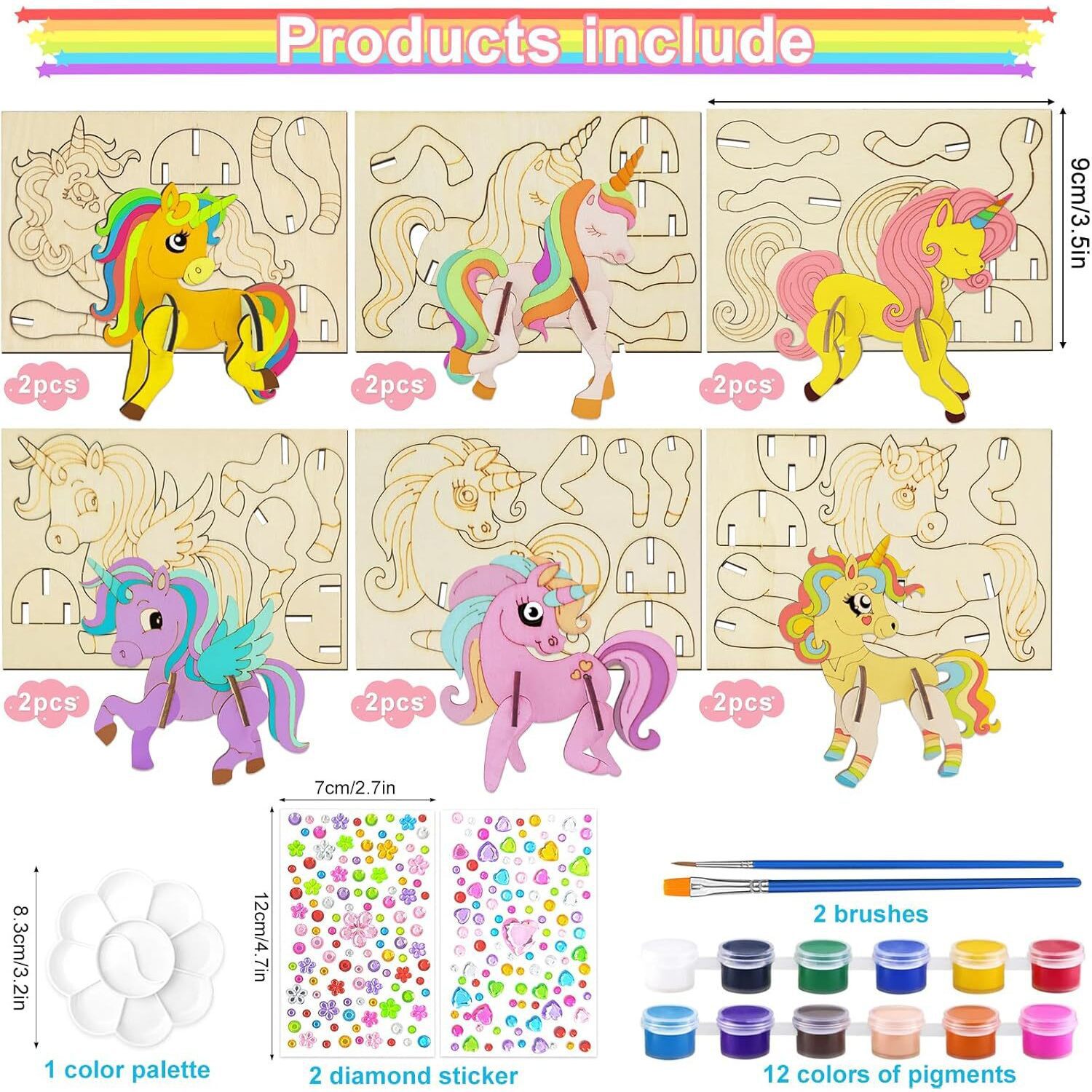 クロスボーダー3D木製品ユニコーンパズル子供手工芸品DIY知育玩具子供プレゼント落書き