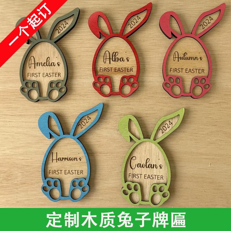 パーソナライズされた彫刻名前バスケット最初イースターウサギ木製石版子供誕生日プレゼント記念品
