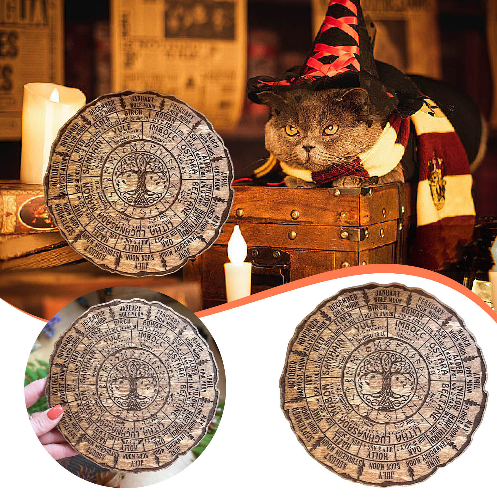 クロスボーダー新作創意ケルト樹暦金家庭用デスクトップ木製装飾品書斎木製カレンダー置物