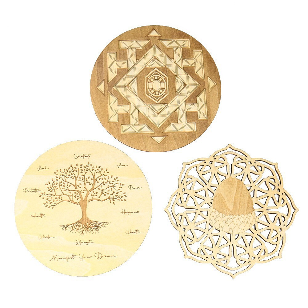 木製カップパッドエネルギー板水晶板水晶石家庭装飾盤エネルギー石YESNO幾何学模様
