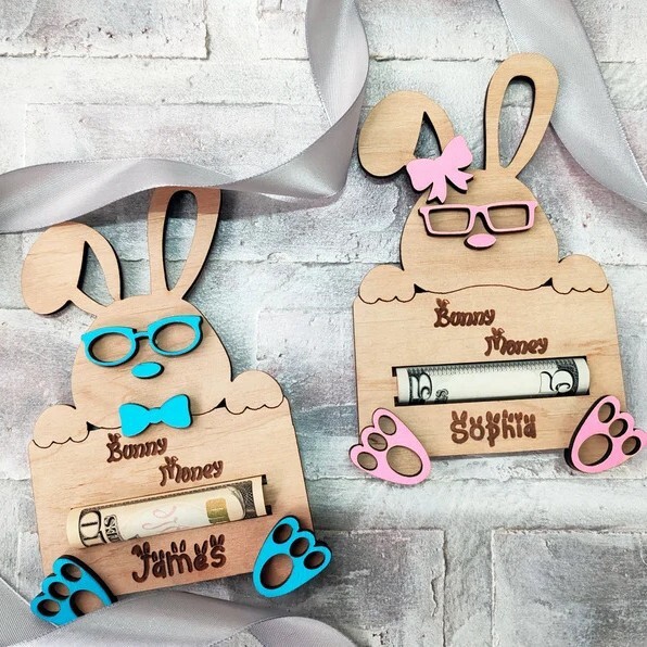 クロスボーダー热い贩売イースターウサギお金クリップクリエイティブ木制贮金箱イースターギフト木制工芸品