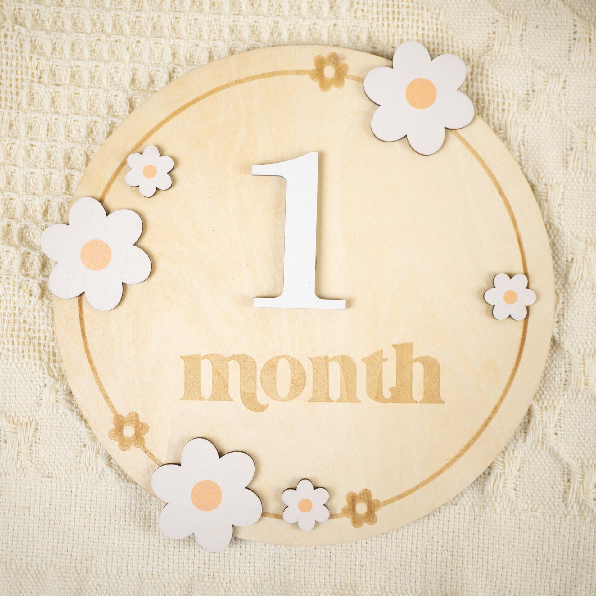 1-12 ヶ月の赤ちゃんラウンドウッドピースマイルストーンカード交換可能なデジタル成長記録写真木製月木製プレート