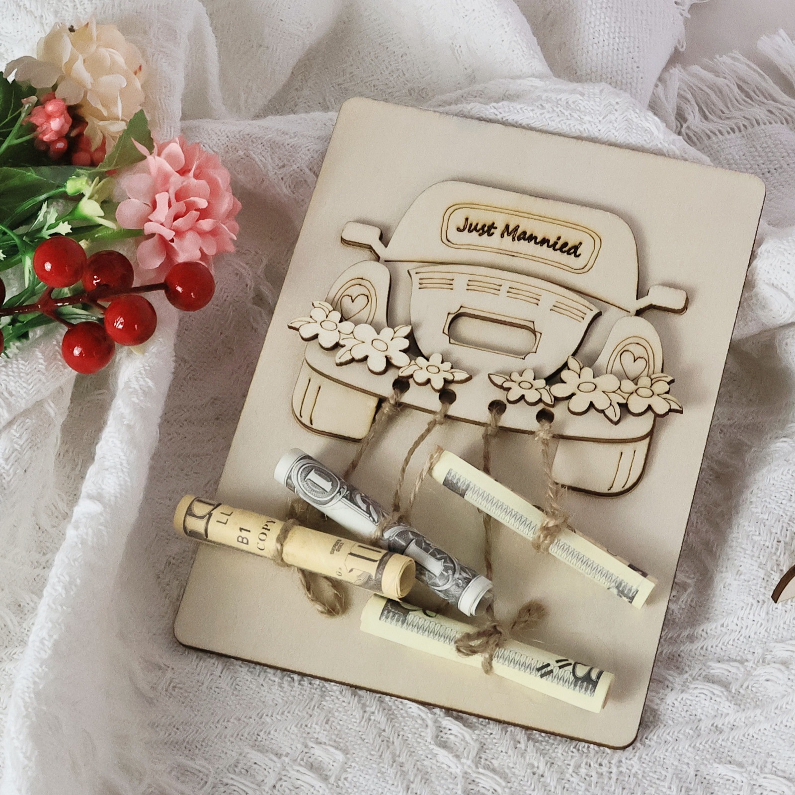 木製結婚車お金クリップ結婚式プレゼントお金クリップ木製工芸品木製結婚お金クリップ車お金クリップ